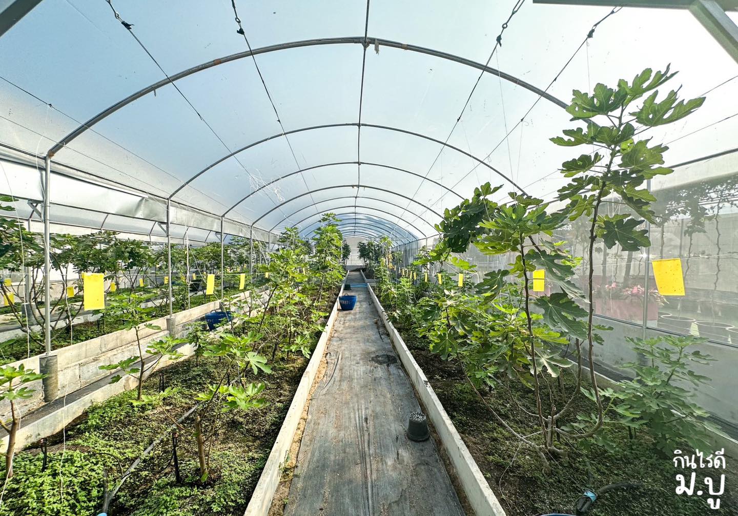 “เราปลูกฟิกส์ ในโรงเรือนตามที่ตั้งใจไว้ โดยยึดหลักเกษตรทฤษฎีใหม่ ตามรอยในหลวงรัชกาลที่ ๙ แม้ตอนนี้จะยังไม่ใช่ฟาร์มออร์แกนิกแบบ 100% แต่เราเน้นแนวคิดเกษตรปลอดภัย Concept คือ คุณใช้เคมีได้ แต่ต้องไม่มีผลต่อผู้บริโภค ไม่ใช้ยาฆ่าแมลง แต่โฟกัสเรื่องของชีวพันธุ์”